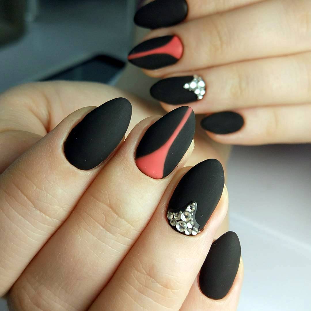- Впечатляюще смотрятся стразы на темном матовом фоне.