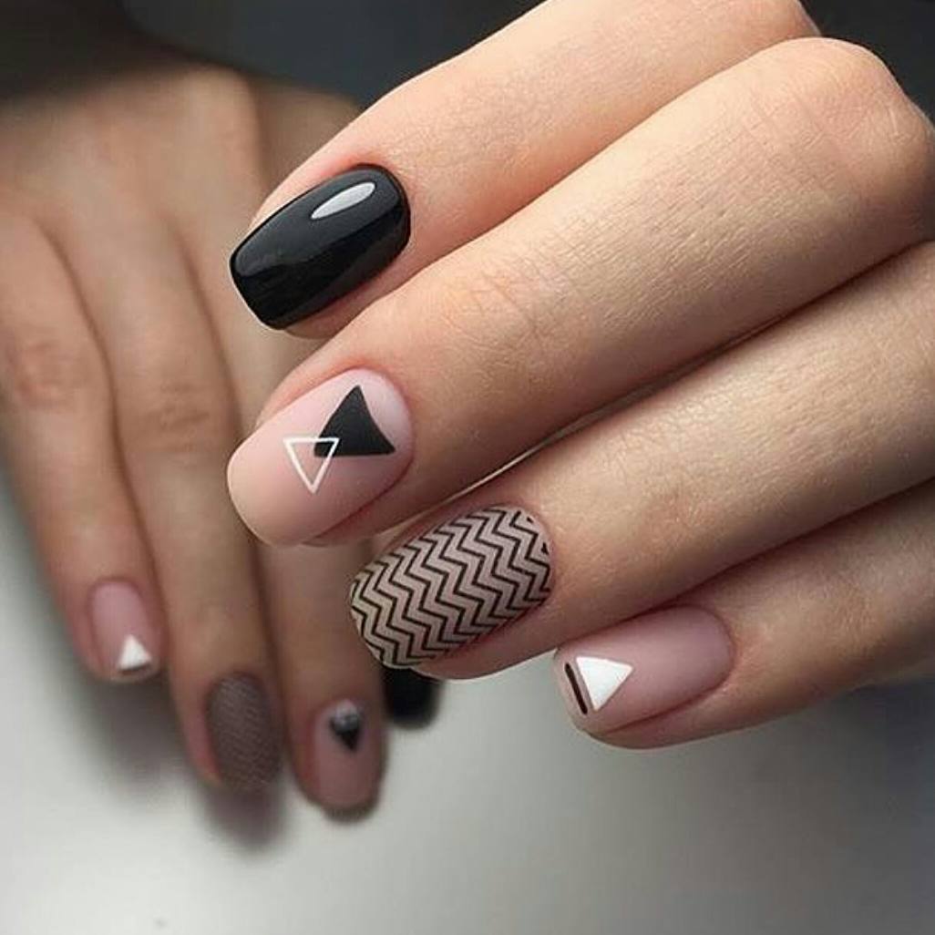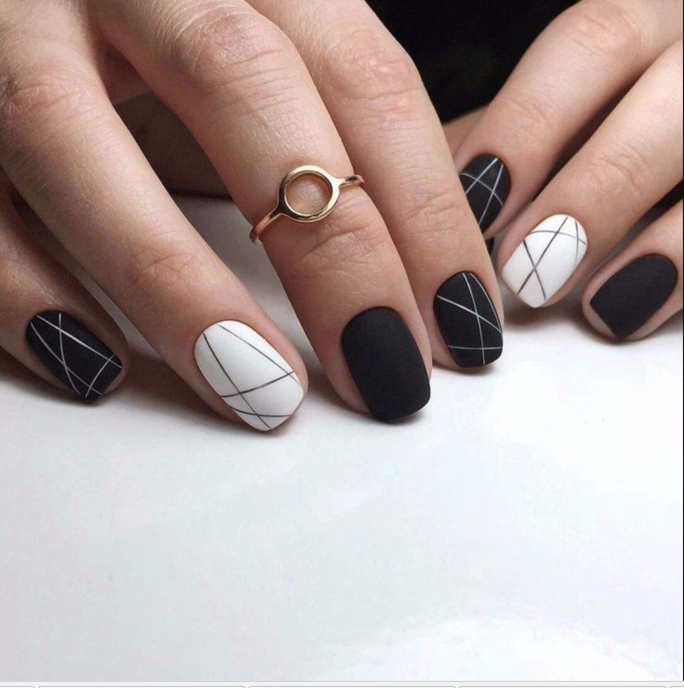 Матовый топ можно использовать не только для однотонного маникюра. Его широко используют для всевозможных дизайнерских идей, в том числе для эффектного контраста с глянцем.