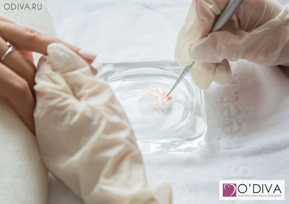 2 способ — смешиваем акриловую пудру с гель-лаком на кристалле или в мисочке.
