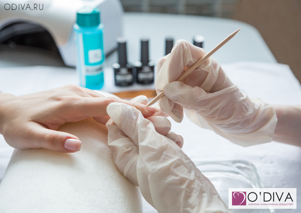 - Первым этапом в исполнении долгосрочного маникюра гелевым лаком является обработка кутикулы. Это нужно делать не только для эстетического эффекта, но и для того, чтобы максимально отдалить коррекцию. Чем глубже обработана кутикула, тем ближе к основанию ногтя можно нанести гель лак. Перед отодвиганием и обрезанием кутикулы стоит размочить руки в маникюрной ванночке с добавлением морской соли;