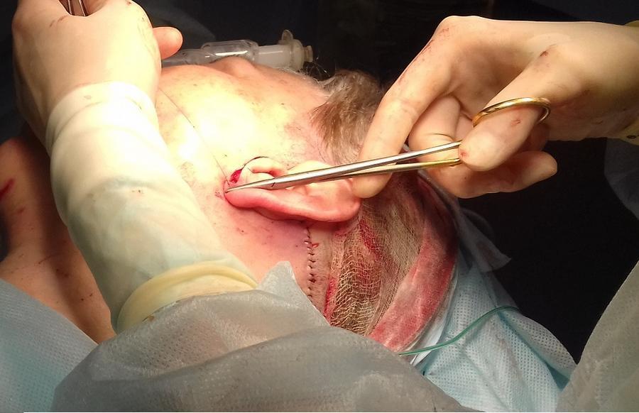 Мне удается достичь этого благодаря фиксации тканей в скрытых областях вокруг ушей и внутри них при помощи специальных узловых швов. Специальные разгрузочные способы фиксации позволяют снять избыточное натяжение и обеспечивают эффективную разгрузку швов, позволяя сформировать тонкие, незаметные рубчики.