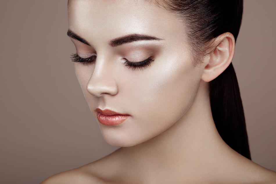 - Осветление близ расположенных уголков глаз, участка кожи под кончиком бровей, ярко выраженной линии скул визуально раскрывает взгляд.