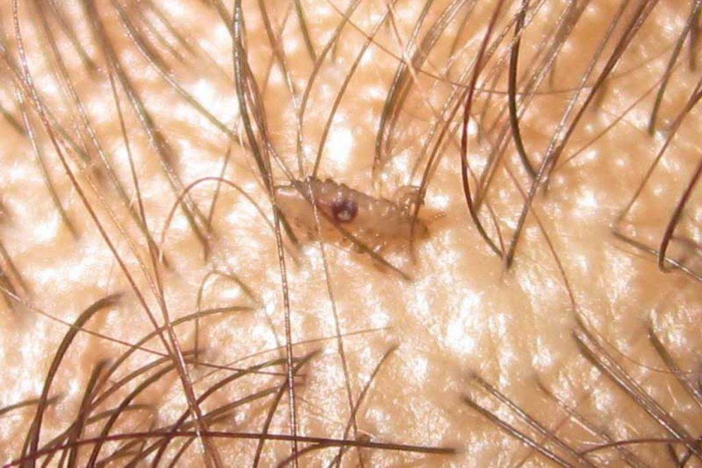 Фото, как выглядит головная вошь, достаточно явно показывает ее внешний вид. А вот как выглядят личинки вшей на волосах: