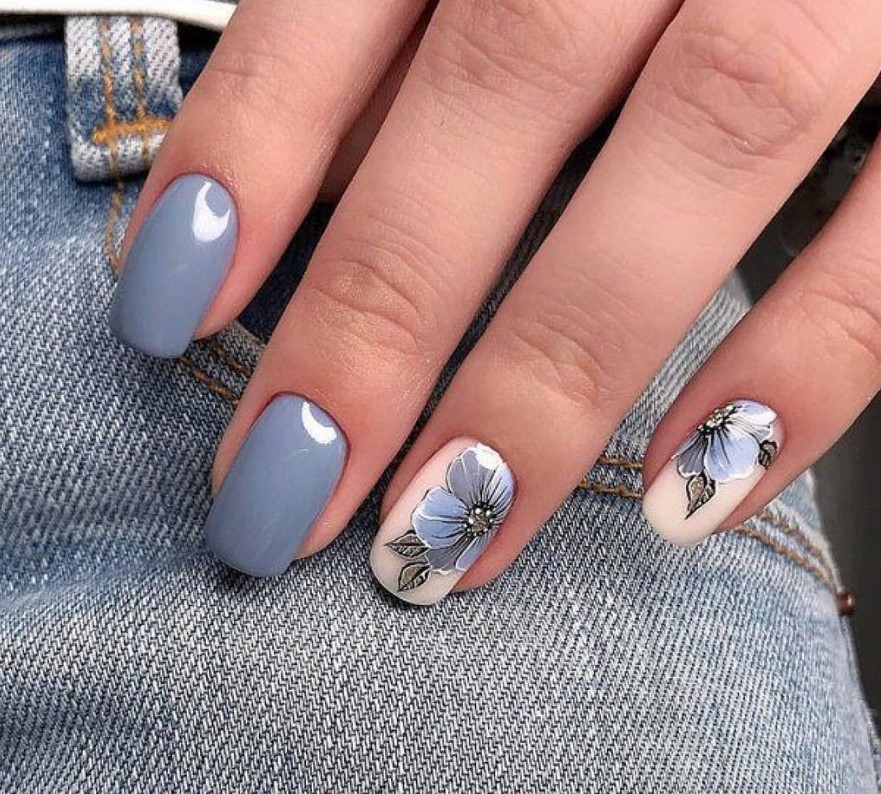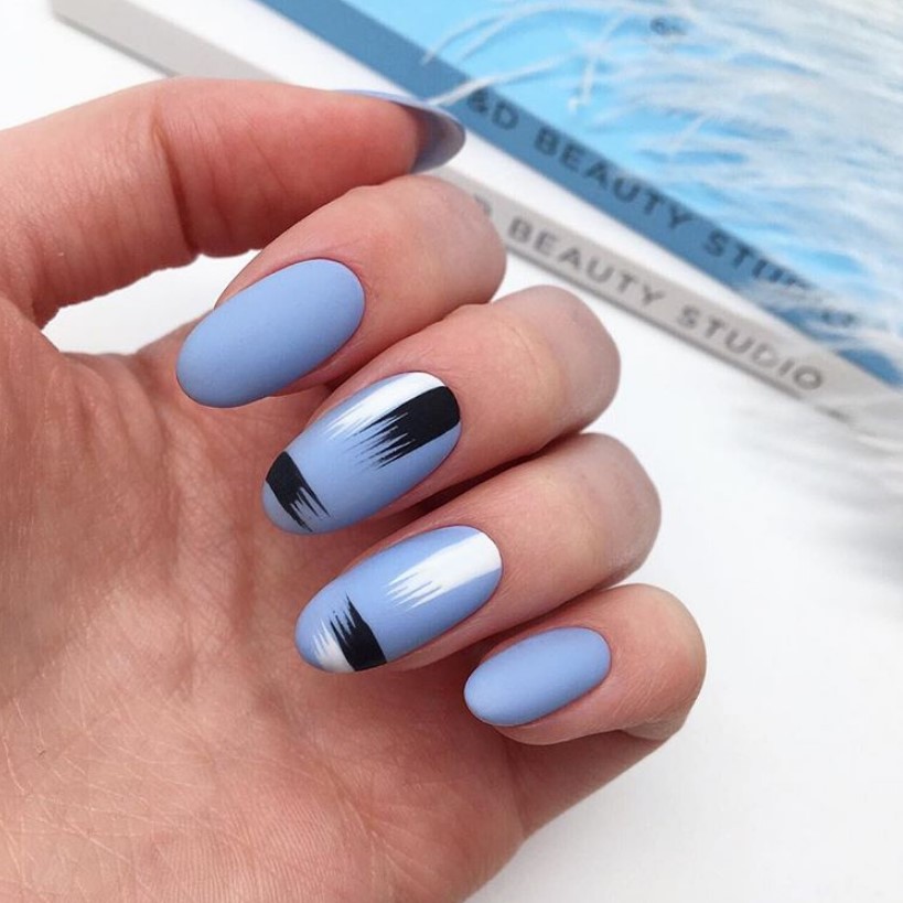 Не стоит использовать матовый тон сразу для всех ногтей. Лучше разбавлять маникюр глянцевым покрытием хотя бы на одном пальце.