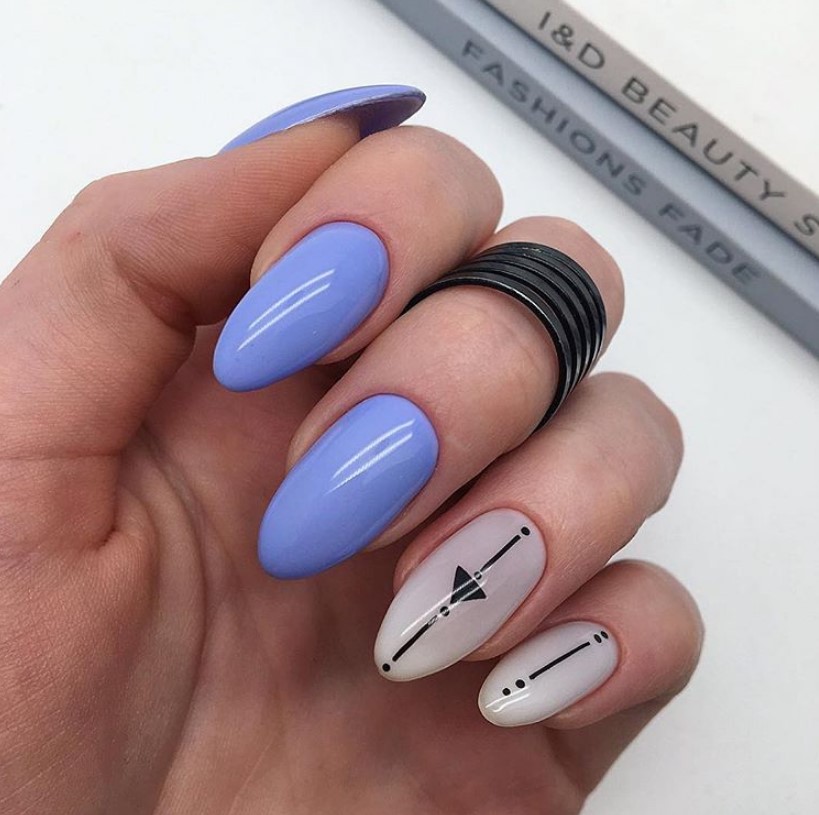 Главная особенность маникюра геометрия осень 2021 — украсить ногти минимальным количеством геометрических деталей и не переборщить с яркими акцентами. Также не повторяйте изображения на каждом пальце. Очень красиво в этом случае смотрятся контрастные оттенки и тонкие черные линии, с помощью которых можно рисовать узоры или использовать как самостоятельный принт, как на коротких ногтях, так и на длинных.