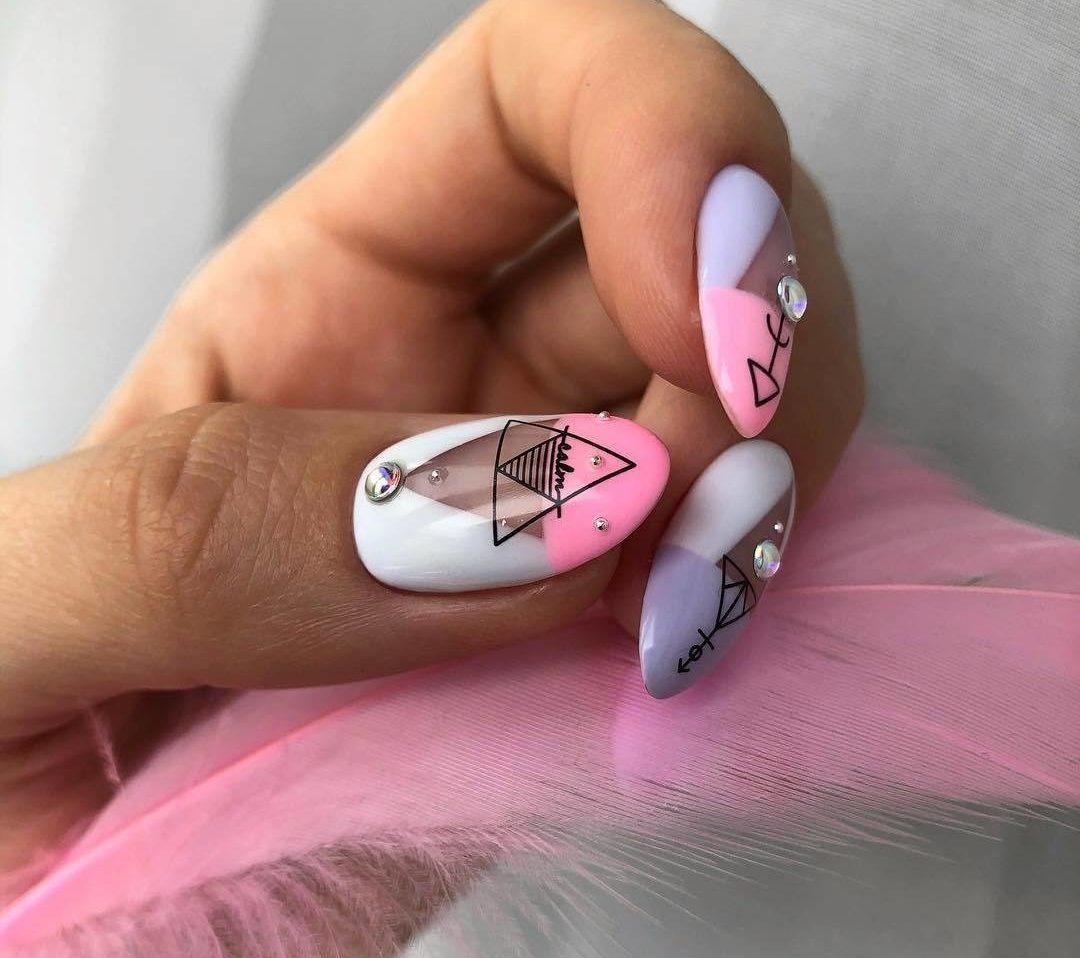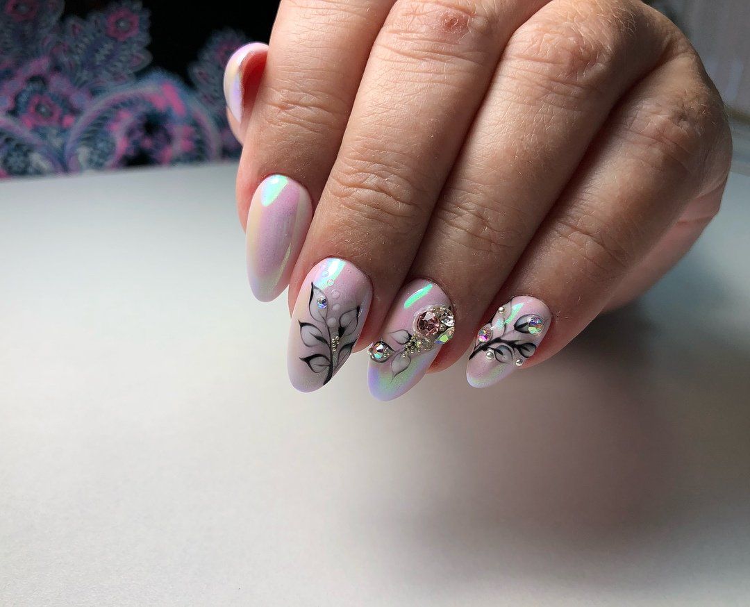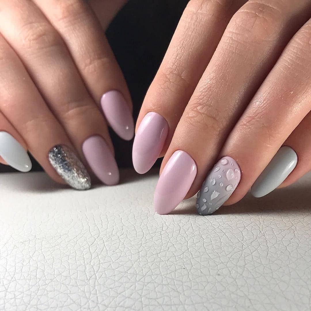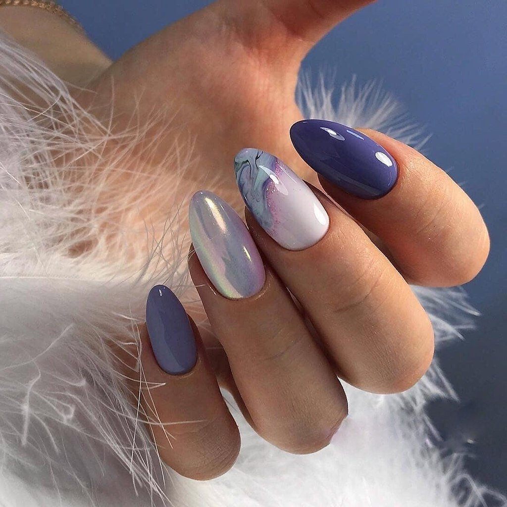 В этом сезоне отдавайте предпочтение миндалевидной форме ногтей, такая форма выглядит очень утончено и стильно. Дизайн ногтей на миндалевидную форму шикарно выглядит и в темных и в светлых оттенках, ярких и пастельных, с блестками, камнями и фольгой, с втиркой и наклейками.