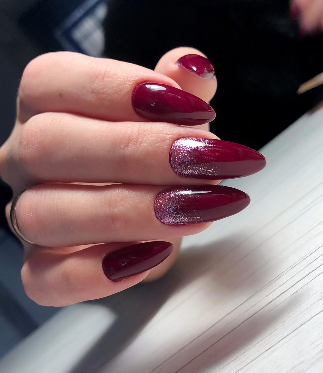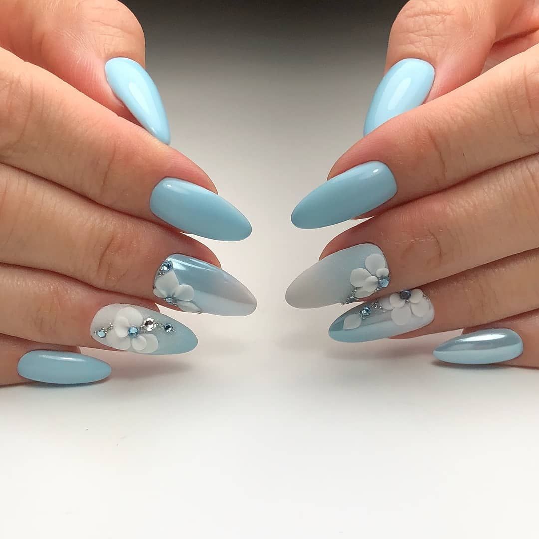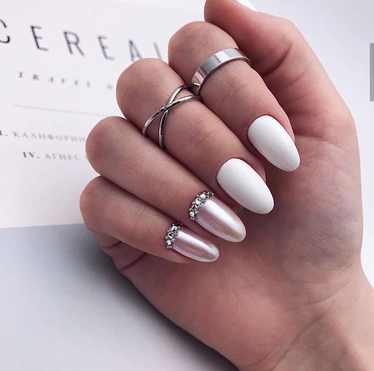 В этом сезоне отдавайте предпочтение миндалевидной форме ногтей, такая форма выглядит очень утончено и стильно. Дизайн ногтей на миндалевидную форму шикарно выглядит и в темных и в светлых оттенках, ярких и пастельных, с блестками, камнями и фольгой, с втиркой и наклейками.