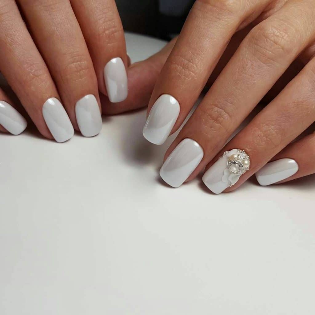 Модный маникюр со стразами в 2021 году можно носить как на коротких, так и на длинных ногтях.
