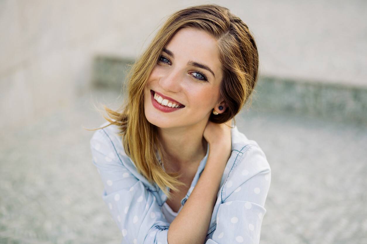 16. Морщинки у глаз, когда девушка смеется