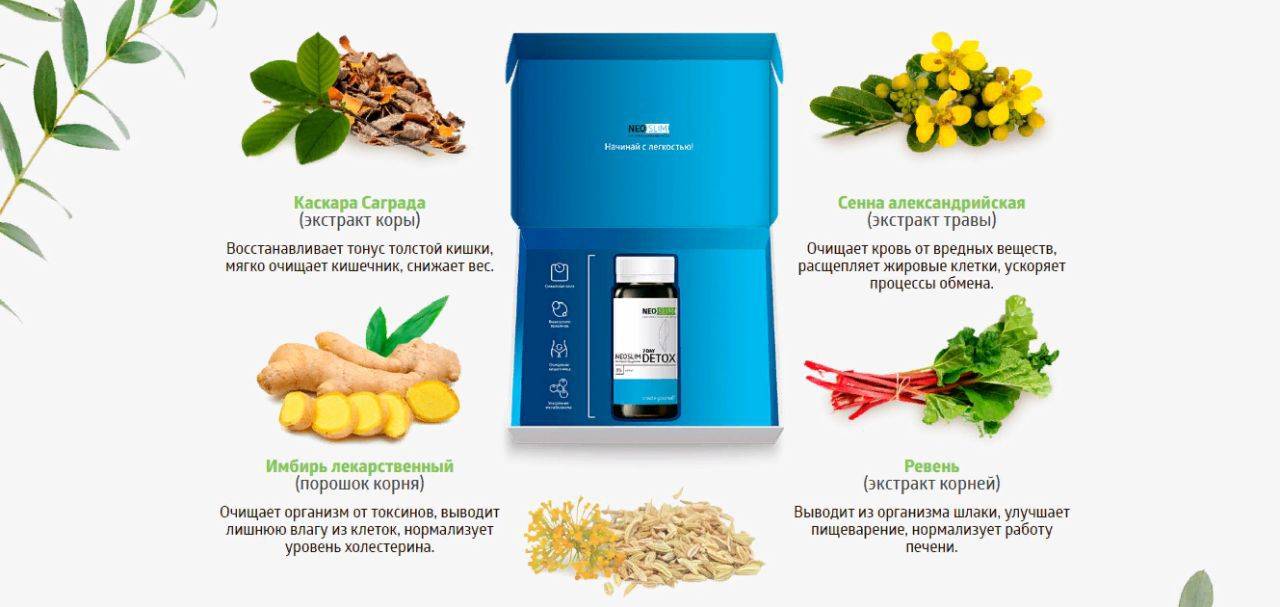 Состав Нео слим для похудения на 100% является органическим и гипоаллергенным. Этот факт подтверждён документально. В основной состав продукта вошли такие компоненты: