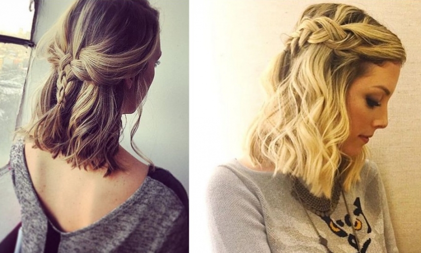 Используя такую же технологию плетения, можно создать еще один, не менее интересный, образ на длине волос до плеч. Пошаговое фото подскажет, как это сделать.