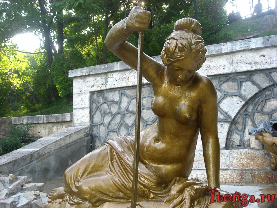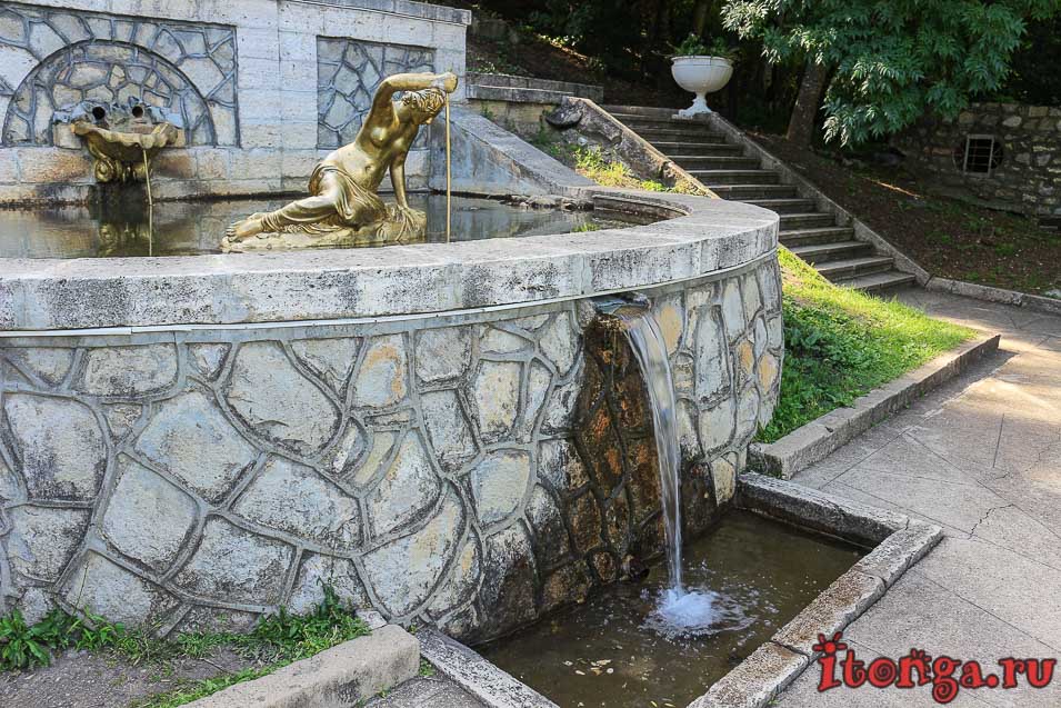 Мы пройдёмся с самого верха и спустимся до самого низу. Первый фонтан украшающий каскадку выполнен в виде нимфы.