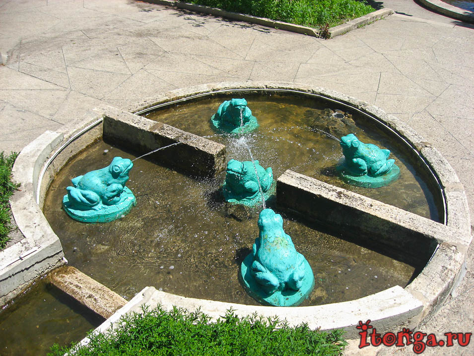 От нимфы вода каскадом стекает вниз до небольшого фонтана с лягушками.