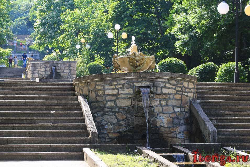 Первоначально, по лестнице сбегали излишки минеральной воды которые не были использованы. Позже к такому дару природы стали относиться более рационально и теперь фонтаны каскадной лестницы заполняет обычная вода. Правда фонтаны и сегодня периодически не работают.