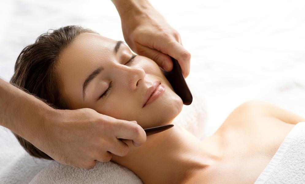 Это, пожалуй, самый древний вид китайского массажа. Процедура заключается в воздействии на рефлексогенные зоны, расположенные на лице и теле. Гуаша проводится с помощью специального скребка. Выделяют три техники скребкового массажа: профилактическую, косметическую, лечебно-диагностическую. Воздействие оказывается на достаточно обширные зоны, поэтому, в отличие от точечного массажа, нет необходимости в четком определении локализации акупунктурных точек. Благодаря простоте применения массаж получил широкое распространение.