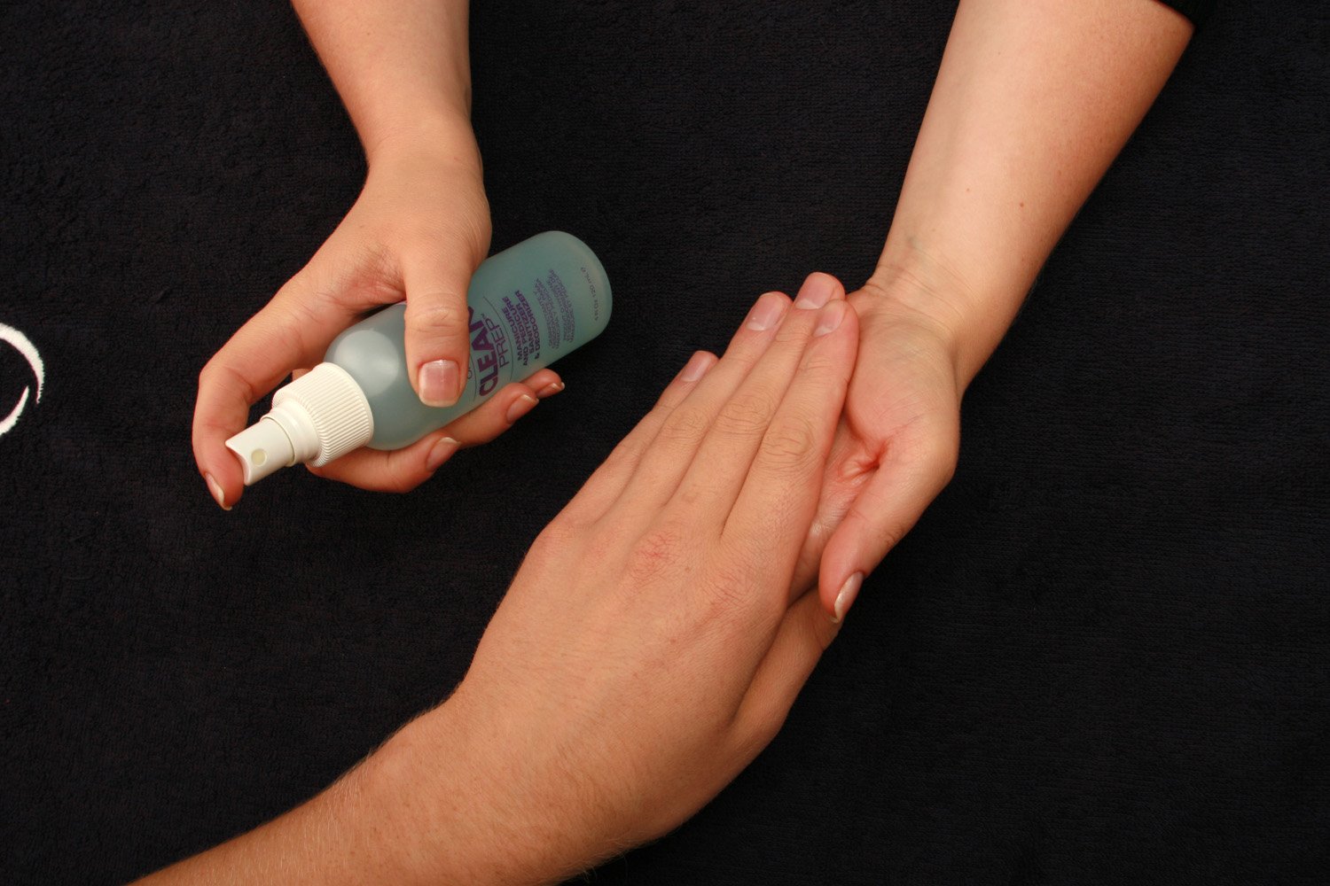 Обрабатываем ноги антисептиком, ждем высыхания;
