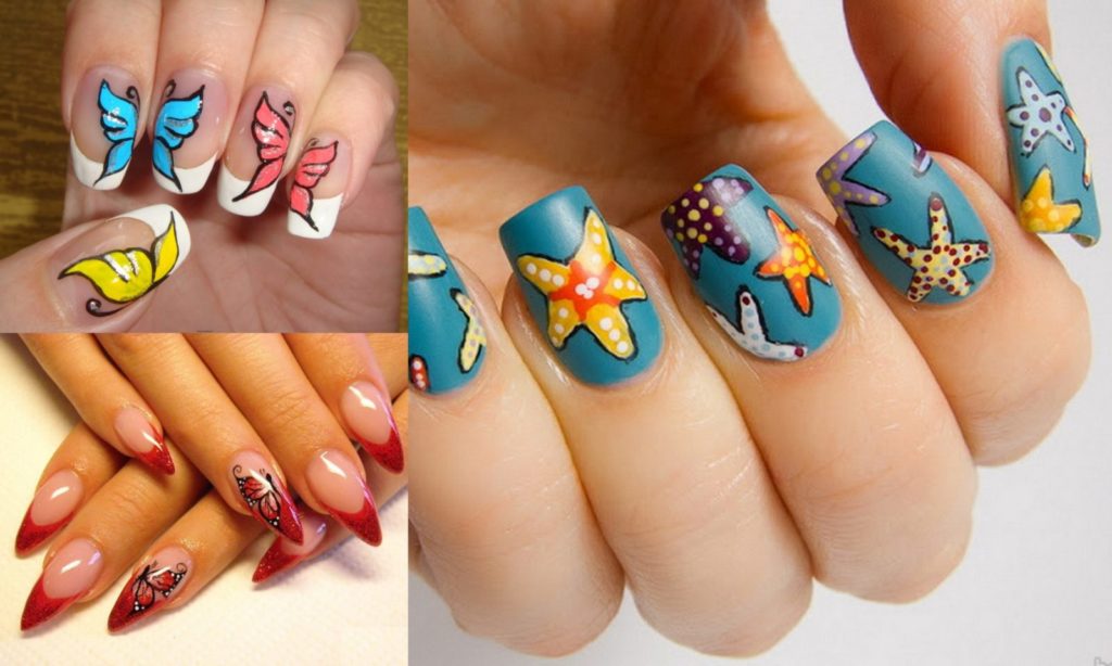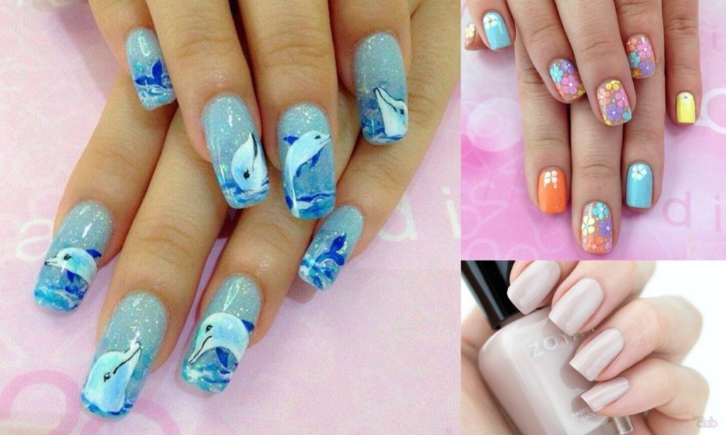 Некоторые предпочитают легкость, что отражается в пастельных оттенках. Рисунки могут иметь морскую или цветочную тематику. Также в летнем маникюре используются сочетания разных цветов. Добавление страз, блесток и прочего позволяет создавать невероятные произведения.