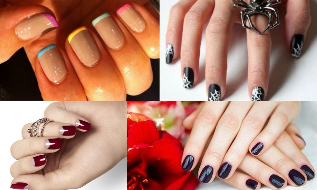 На коротких ногтевых пластинах хорошо выглядит классический или цветной френч. Можно украсить поверхность рисунком, принтом, декоративными элементами. Но не стоит увлекаться – обилие деталей зрительно уменьшает размеры ногтевой поверхности. Однотонное покрытие выглядит привлекательно, если его нанести аккуратно. Желательно остановиться на светлых тонах, поскольку насыщенные оттенки тоже укорачивают ноготь.