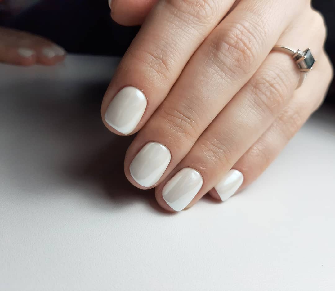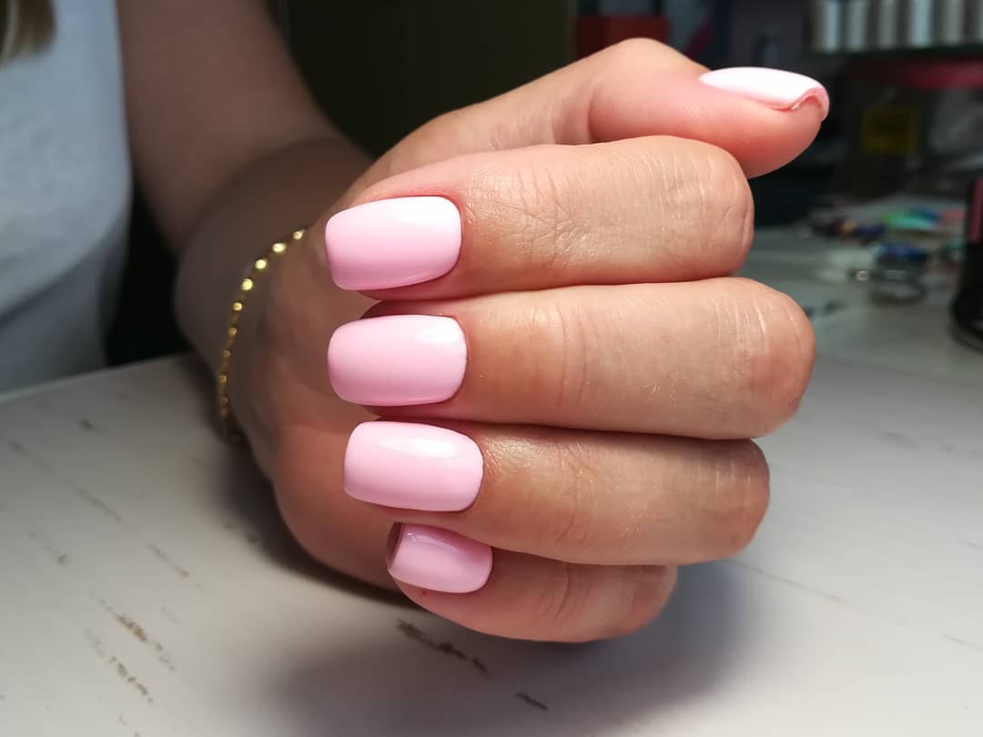 На коротких ноготках и пухлых пальчиках, как правило, хорошо смотрятся светлые однотонные покрытия, они визуально «вытягивают» пластину на искусственных ногтях и делают пальчики толще.