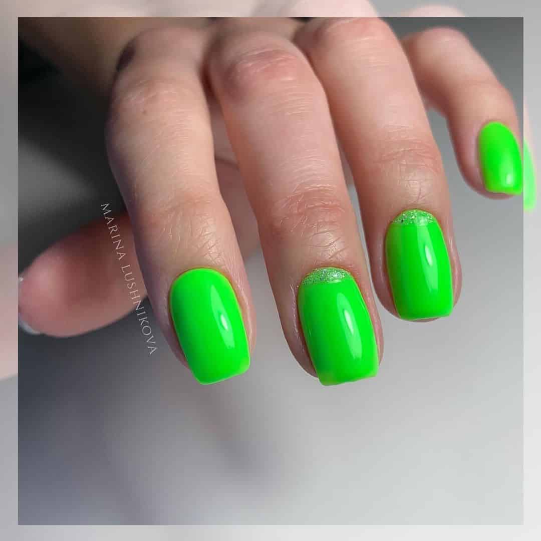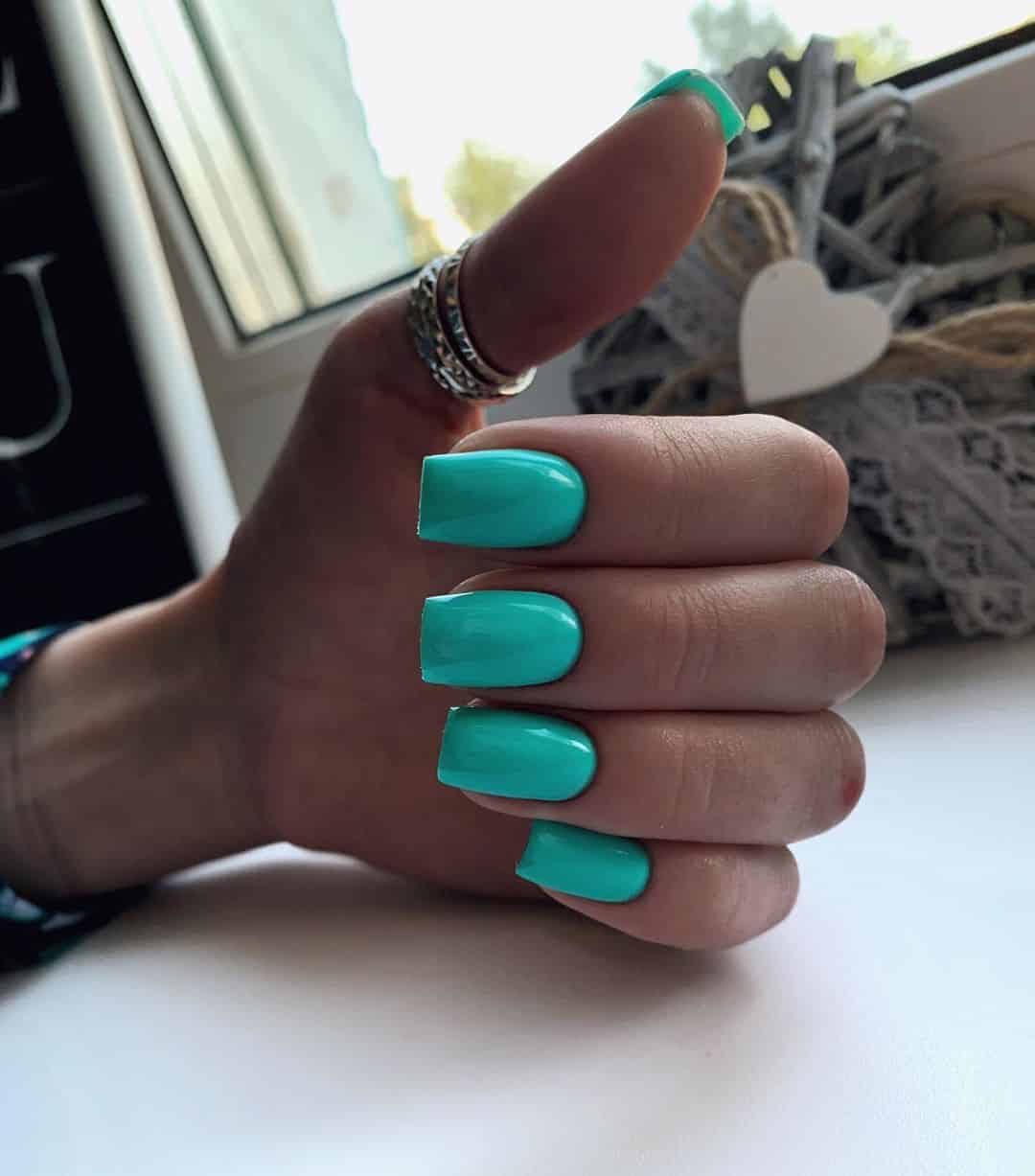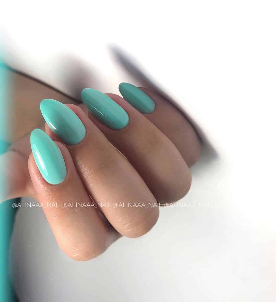 - Синий, зеленый. Этот вариант мало сочетается с деловым стилем, но эффектно дополняет экстравагантный образ. Длина ногтей может варьироваться.