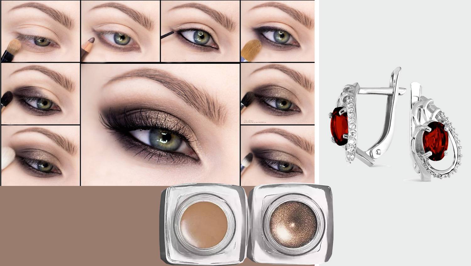 Макияж для серых глаз при «теплом» цветотипе выполняется в соответствующей палитре тонов: