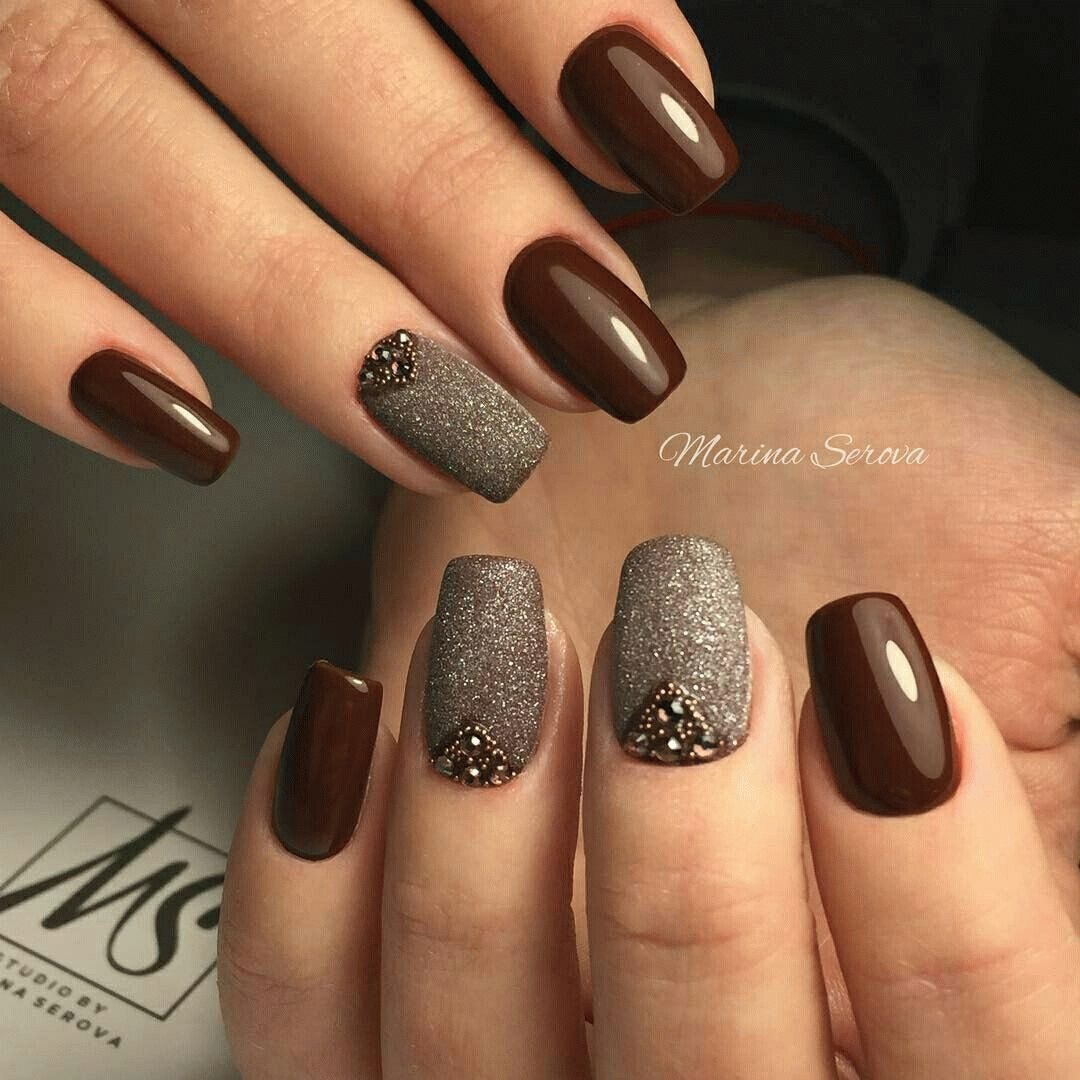 Шоколадный маникюр со стразами 2022 фото великолепные идеи