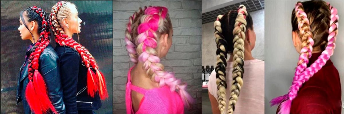 А что делать, если длины собственных волос со стрижкой недостаточно для такого великолепия? Есть вариант использовать накладные локоны, которые крепятся при помощи заколок, но они подойдут для одной косы любого вида. Если же планируется деление волос на зоны, то в таком случае подойдет канекалон. Тем более что его пестрые смелые оттенки так полюбились современным модницам.