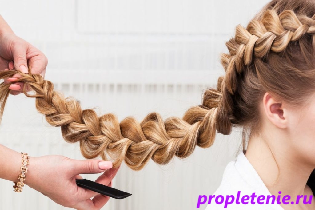- После каждого перекреста очень туго затягивайте прядки, они будут выглядеть аккуратно, причёска продержится дольше.