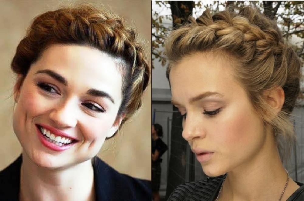 - коса вокруг головы – лучшее решение для обладательниц круглого лица. Волосы, уложенные и переплетенные в виде короны или корзинки, добавляют девушке величественности и шарма;