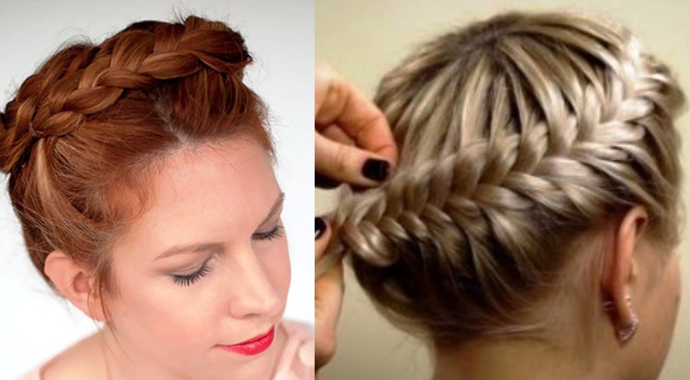 Для взрослых женщин подойдут те варианты, с которыми пряди заплетаются в объемные косы и фиксируются в виде ободка.