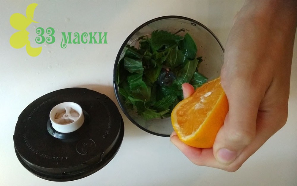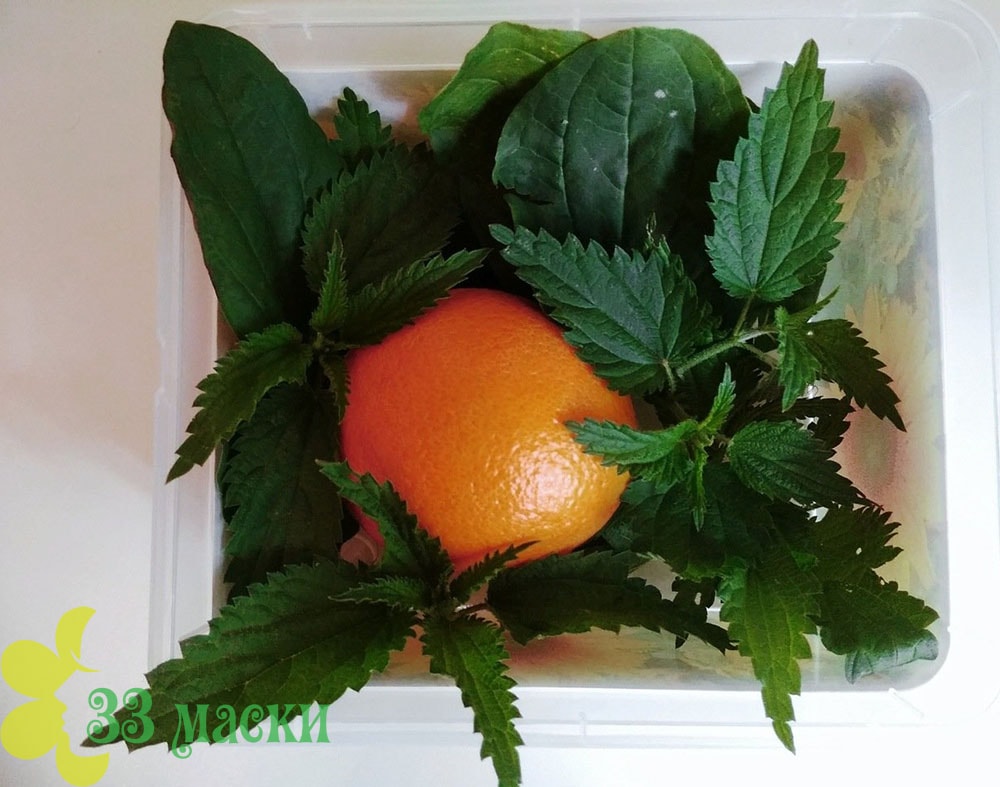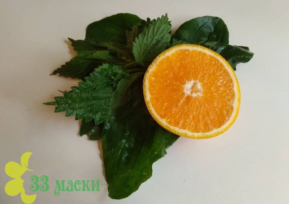 Смешайте кашицу из свежих листьев крапивы и подорожника, после чего добавьте к составу свежевыжатый апельсиновый сок.