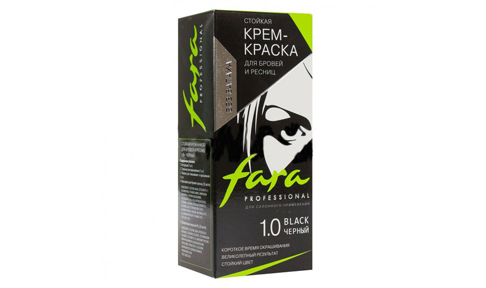 Fara Professional – классическая крем-краска для окрашивания бровей с нежной текстурой, что обеспечивает максимально стойкий эффект. Основным преимуществом продукта стала мягкость окрашивания, он отлично подходит для чувствительной кожи, не приносит вред глазам. Упаковка выглядит лаконично, внутри нее скрыт стандартный набор, в который входит проявляющаяся эмульсия, крем-краска, кисточка для окрашивания и емкость. Кисточка имеет уникальную ворсистую поверхность, что тщательно прокрашивает волоски. Пожалуй, именно кисточка стала одним из главных достоинств Fara Professional. С ее помощью можно прорисовать линию бровей, придавая им естественный вид.