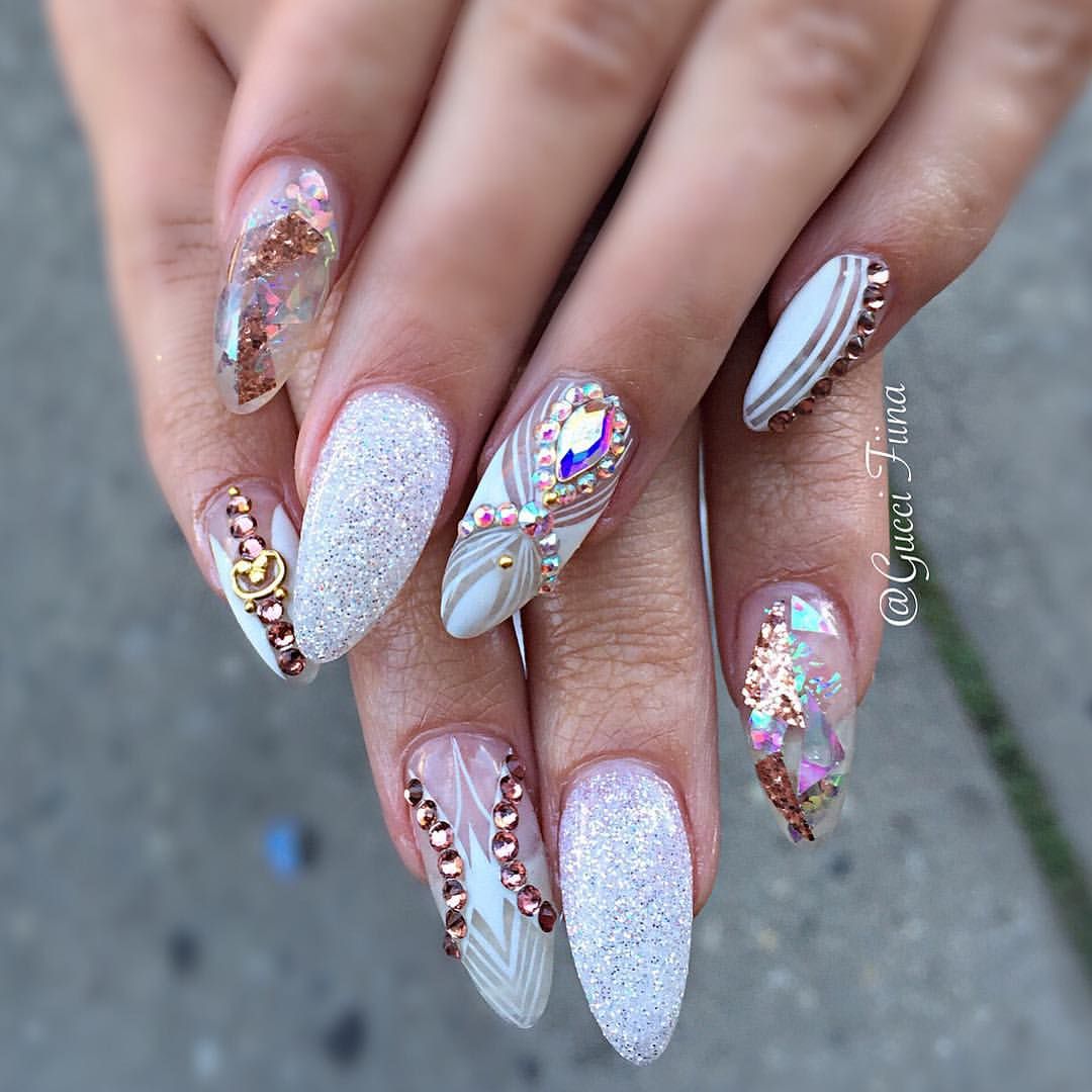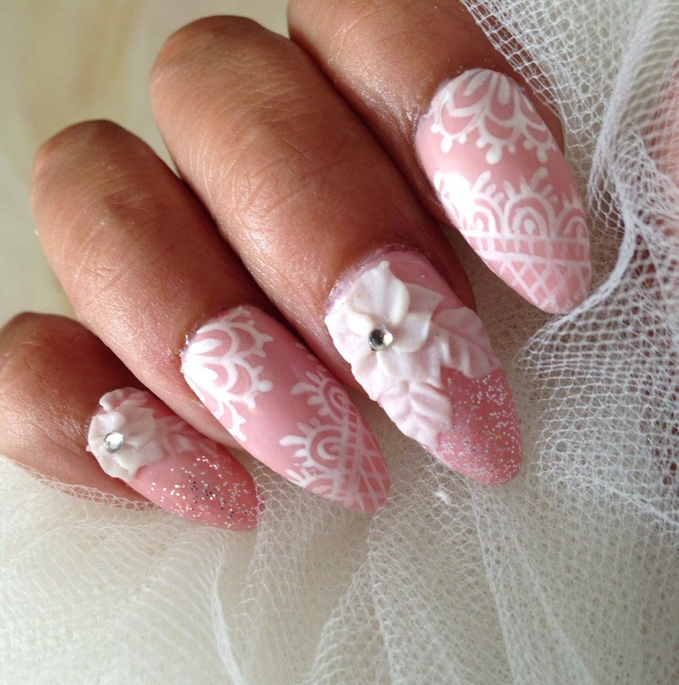 Когда вы определились с длиной, формой и качеством покрытия ногтей, самое время перейти к выбору свадебного дизайна. Дизайн, будь то сложная роспись, элементы рисунка или стразы, должен соответствовать длине и форме.
