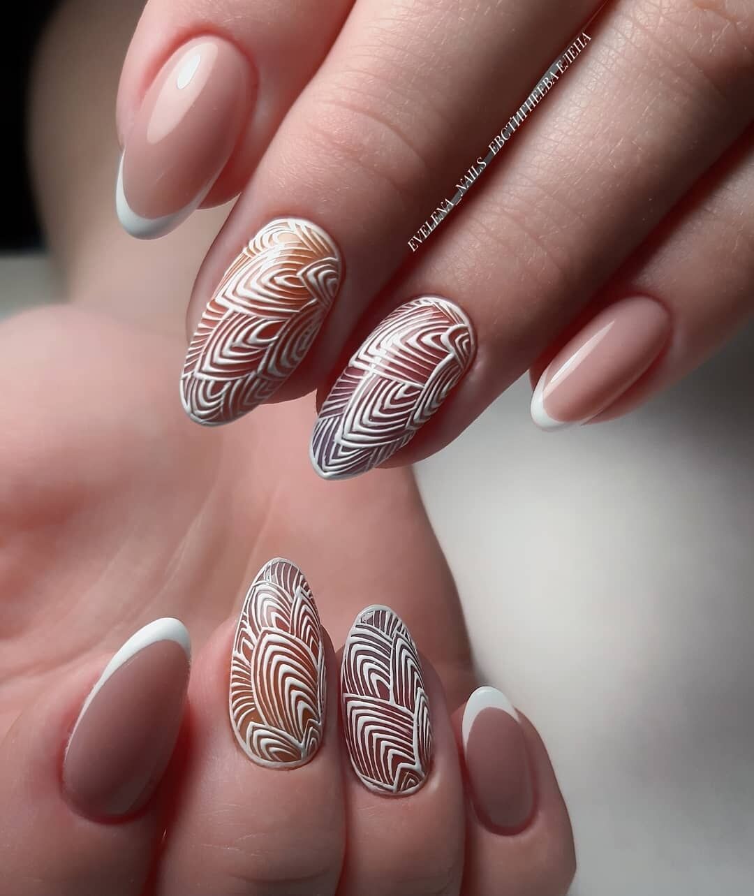 Маникюр на свадьбу технике «Мрамор» с геометрией и не только.