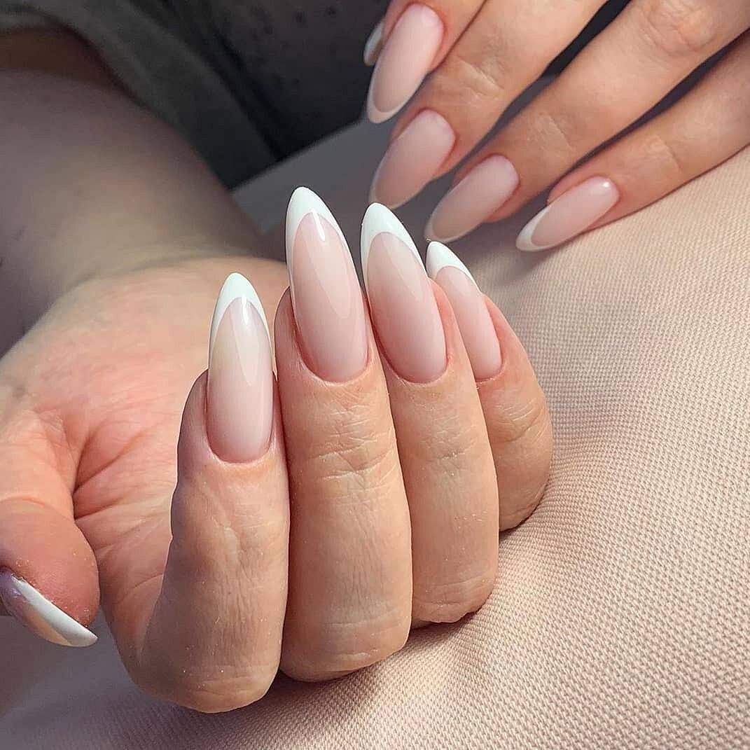 На длинных ногтях формы балерина, очень красиво и необычно будет смотреться треугольный френч.