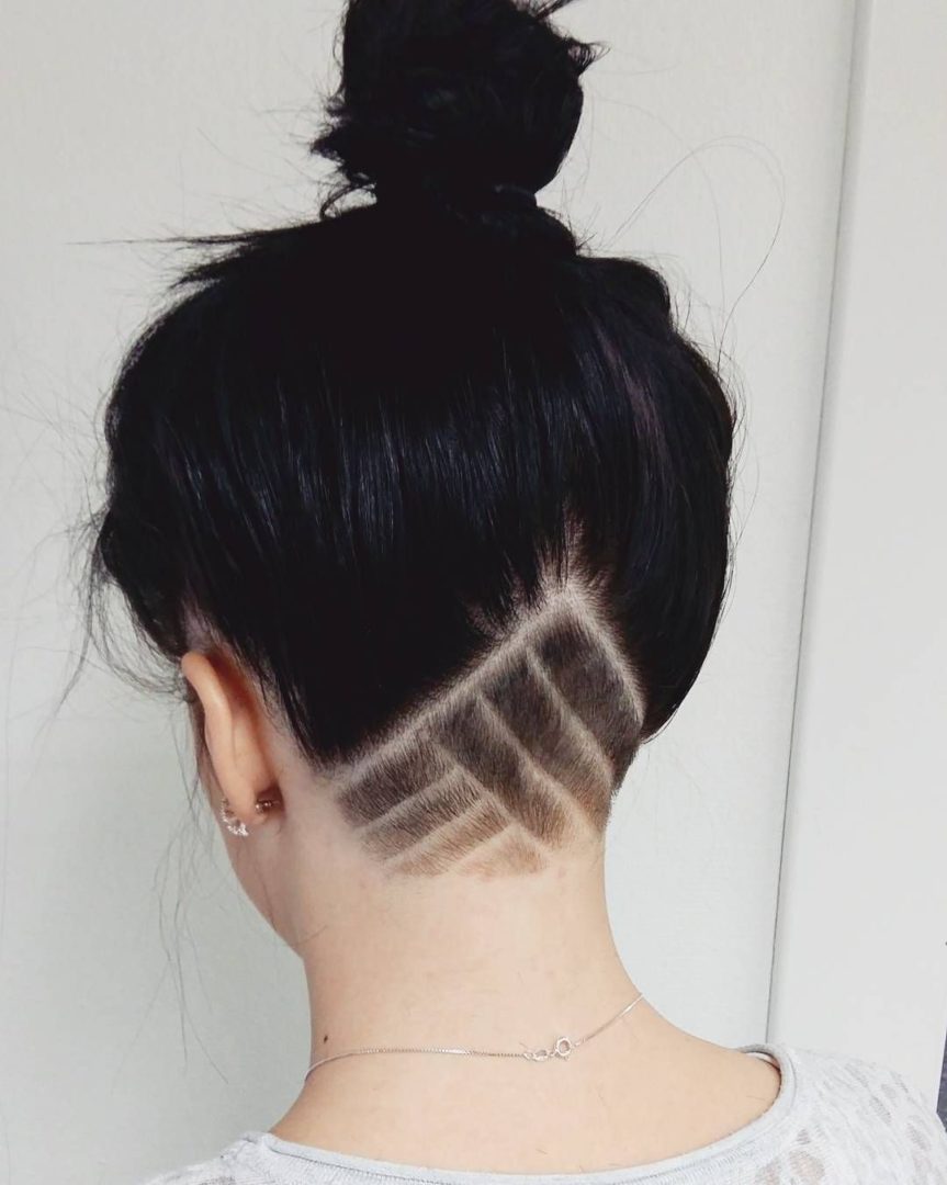 Модная стрижка с выбриванием 2023-2024 для средних волос