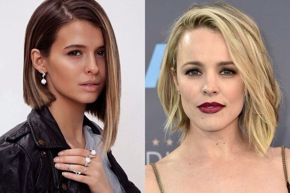 Такой тип стрижки отлично подойдет для девушек с красивой кожей и женственным овалом. При выборе этого варианта нужно быть аккуратнее круглолицым особам: им рекомендуется отказаться от прямого пробора посередине, так как он будет визуально делить лицо на две части. Лучше сделать косой пробор или прямой сбоку, или, как вариант, пробор зигзагом. Каре без челки также не пойдет девушкам с удлиненным лицом и сделает его более вытянутым.