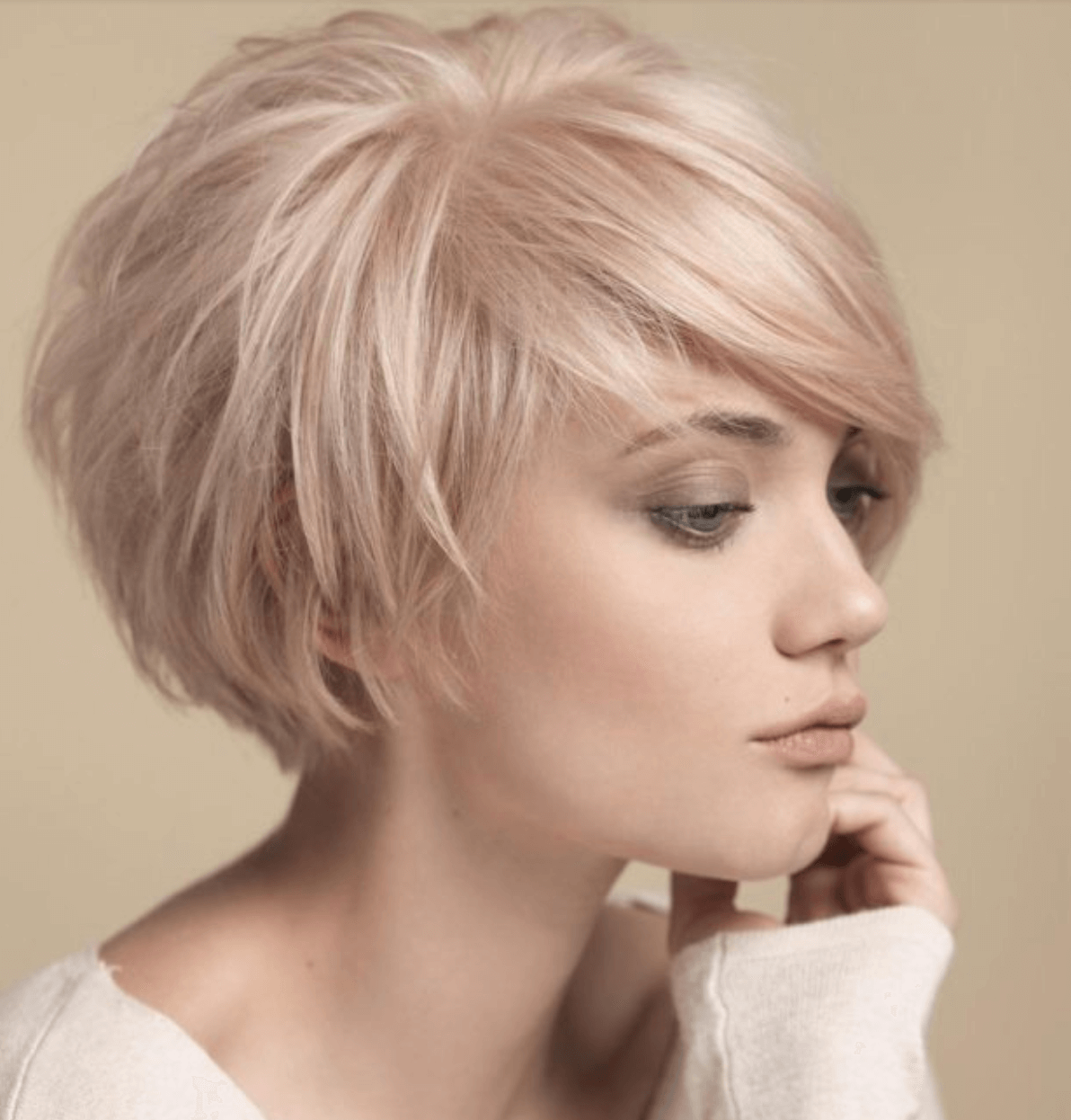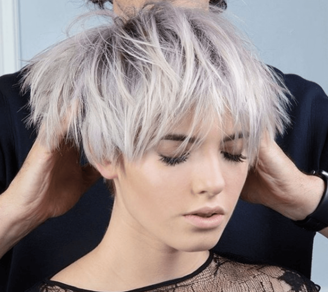 Пикси с длинной челкой и модной укладкой