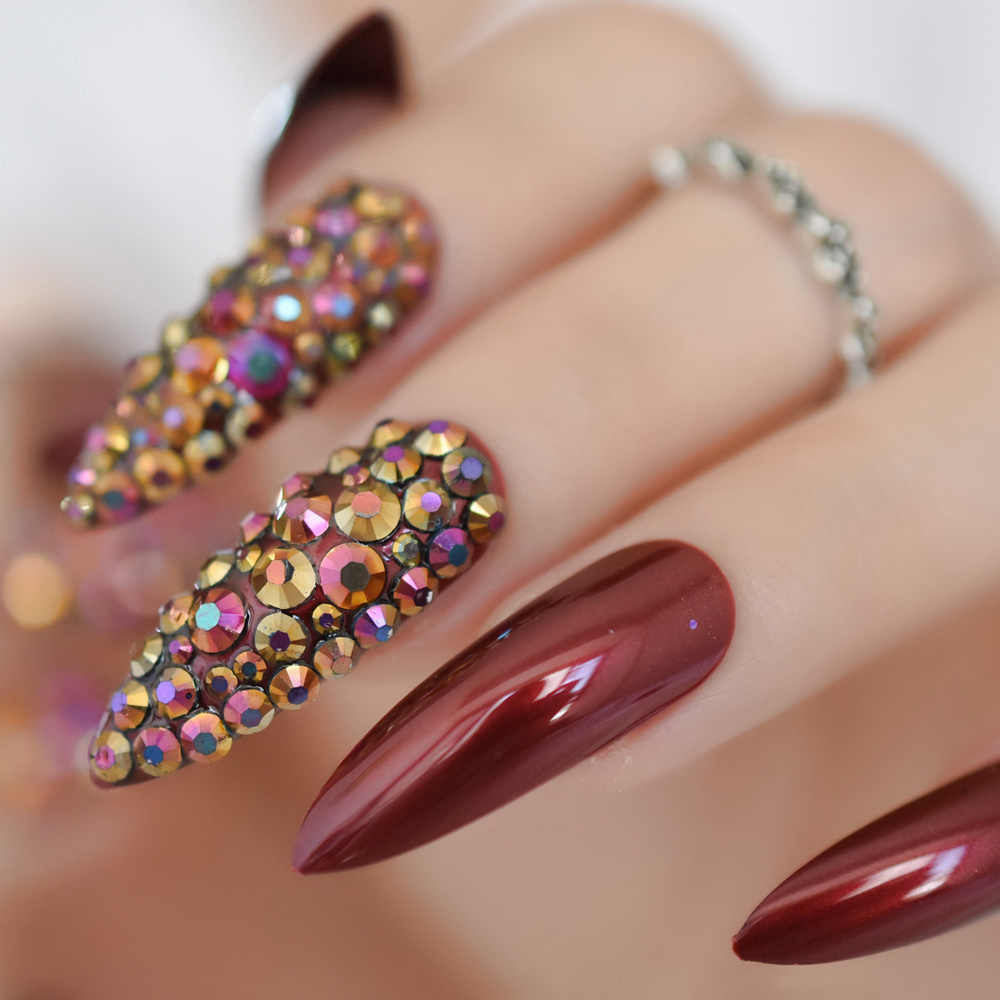 В последнее время стали популярны матовые граненные стразы, которые для четкости рисунка можно продлить бульенками желаемого цвета.