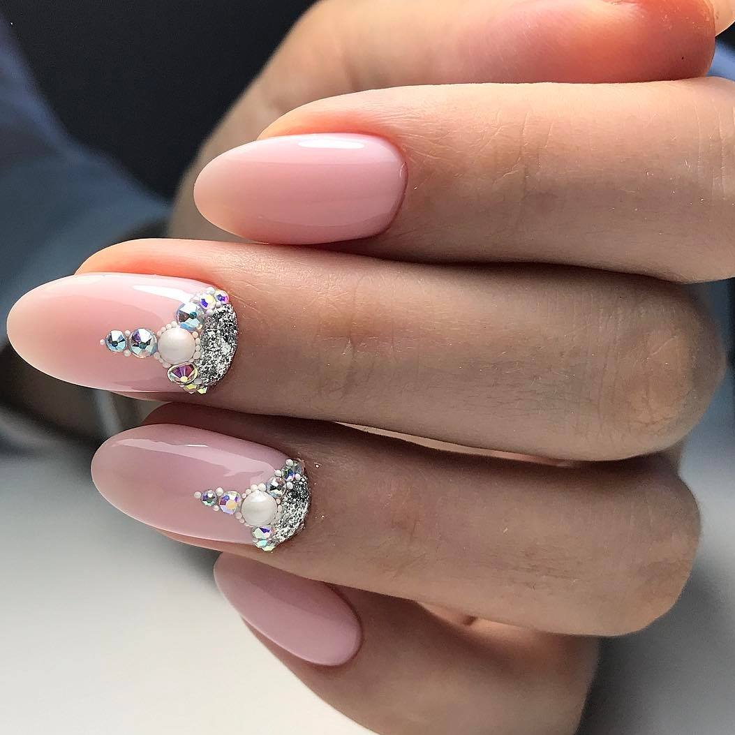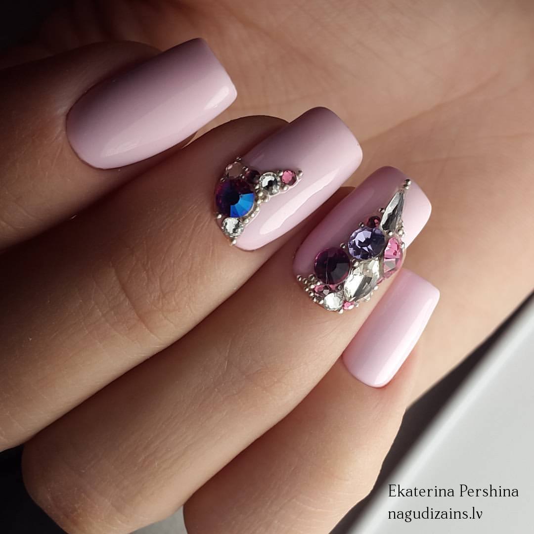 Главные особенности розового маникюра со стразами 2020