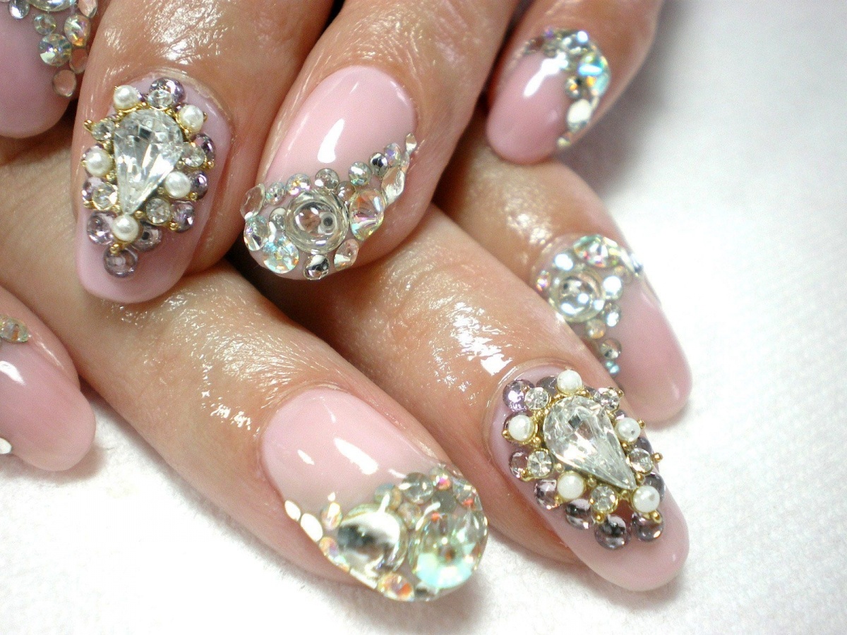 Акриловая лепка, новогодние снежинки, цветы на ногтях становятся выгоднее, когда их украшают стразами.