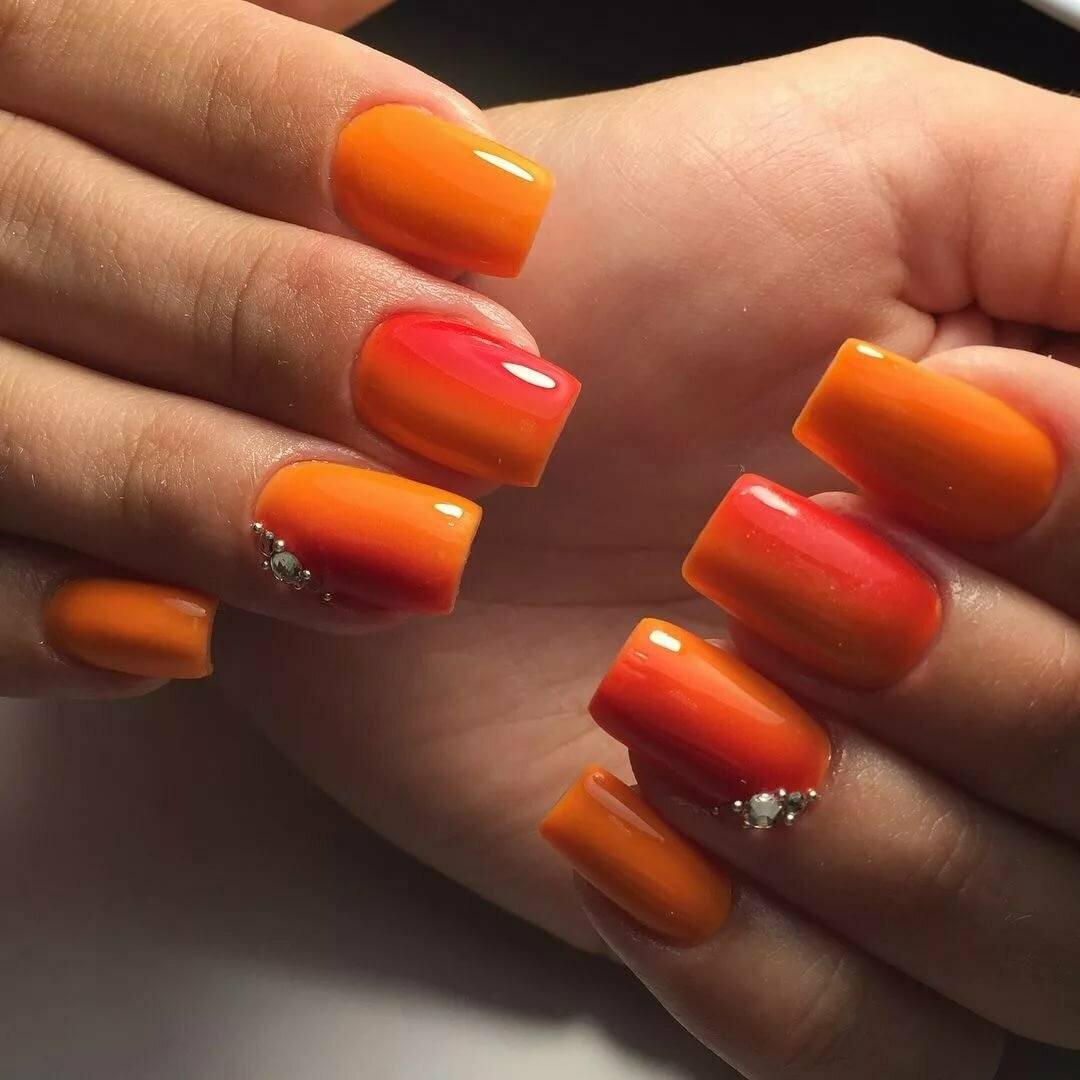Эффектный градиент пользуется невероятной популярностью. Однако выглядеть он может совершенно по-разному. По большей части все зависит от выбранных оттенков лака. В основном мастера рекомендуют комбинировать оттенки в одной цветовой гамме или же контрастные. В первом случае оформление будет более нежным. А второй вариант предполагает более дерзкое сочетание. Тем не менее, каждый из них выглядит достойно. Что касается декорирования, то стразы в данном случае используются часто. Их выкладывают на лунках, в виде полосок или даже целых фигур.