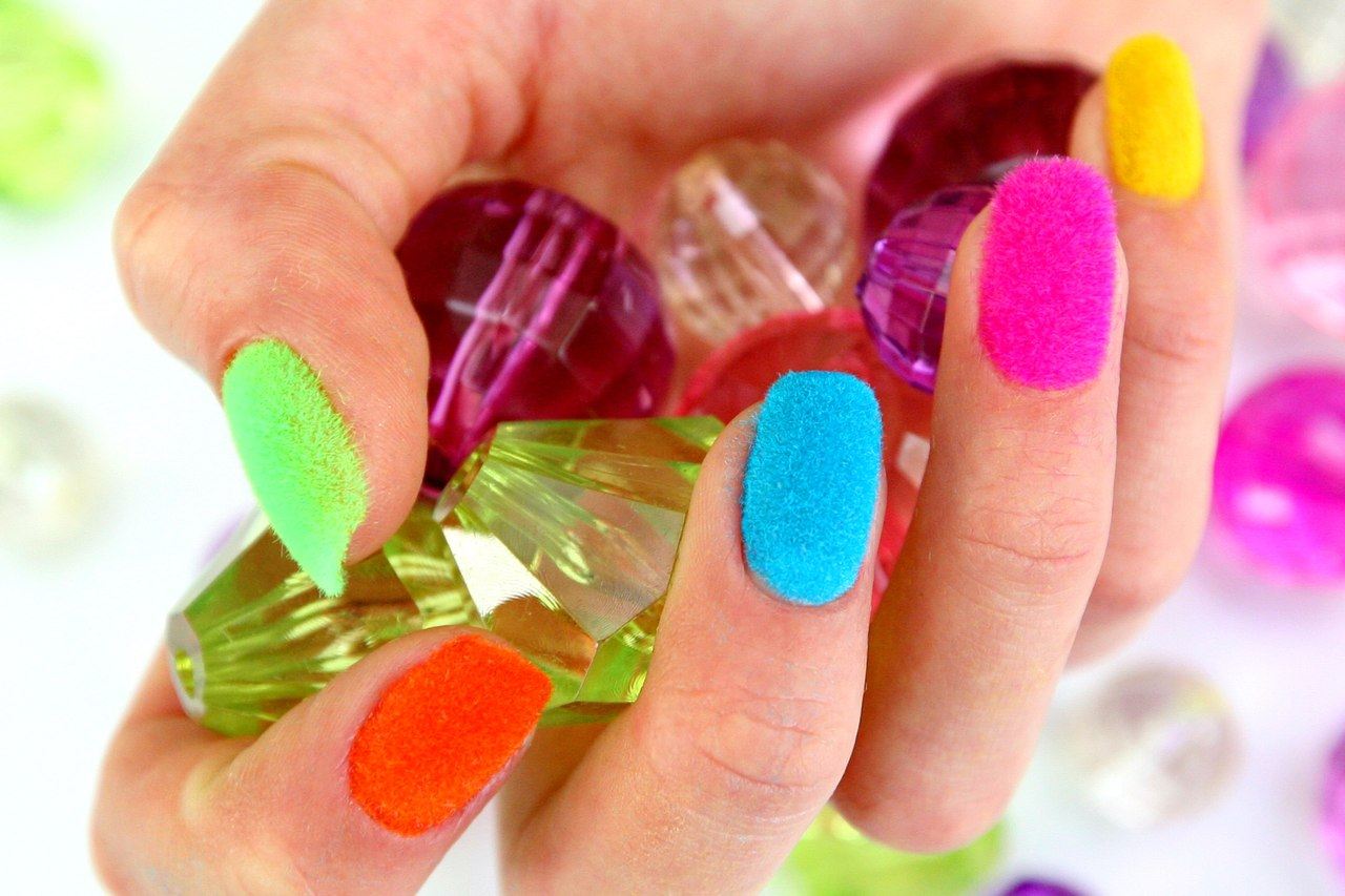 Классический флок обычно настолько мелкий, что создает мягкое велюровое покрытие на ногтях, но некоторые модницы идут еще дальше и создают креативный маникюр с более длинными ворсинками. Выглядит такой дизайн весьма необычно, но, ни этого ли эффекта мы хотим добиться.
