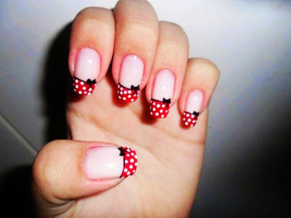очень женственный красный френч в горошек