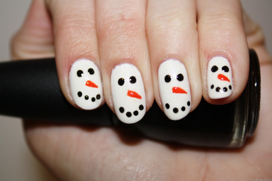 - половина снежинки размещается по краю ногтя.