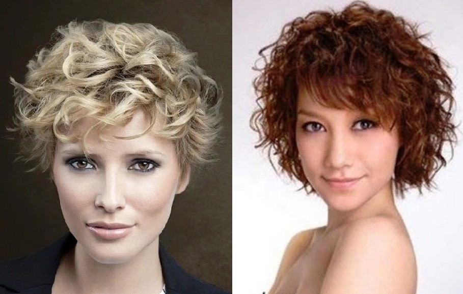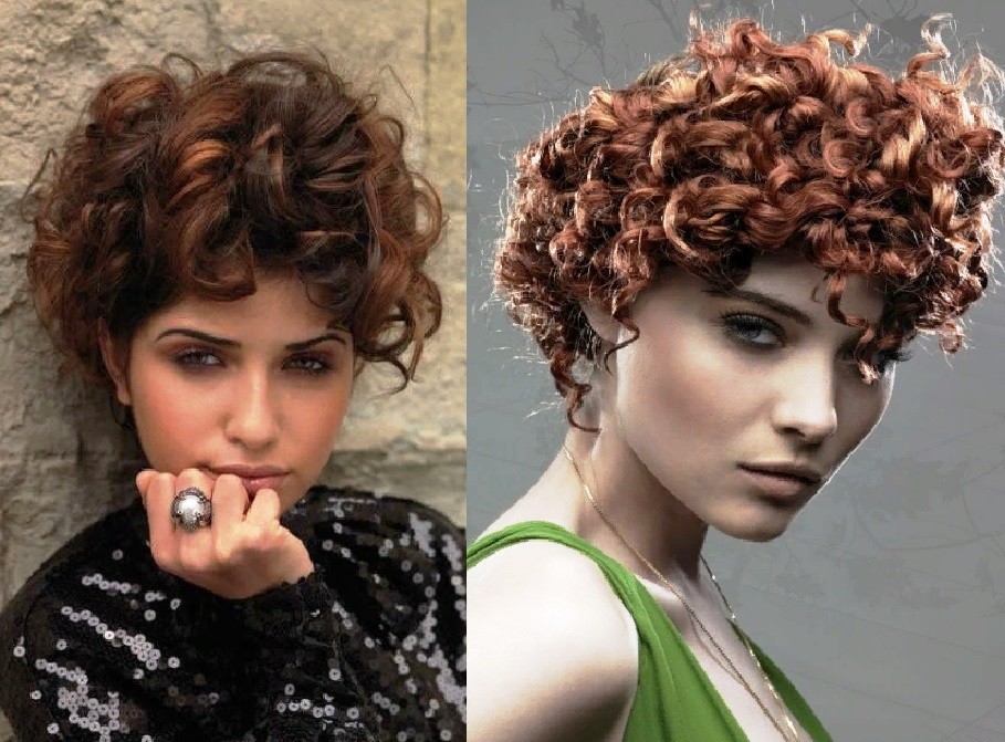 - Если лицо само по себе круглое, то красивые кудри на короткие волосы в данном случае будут как можно мельче по размеру.