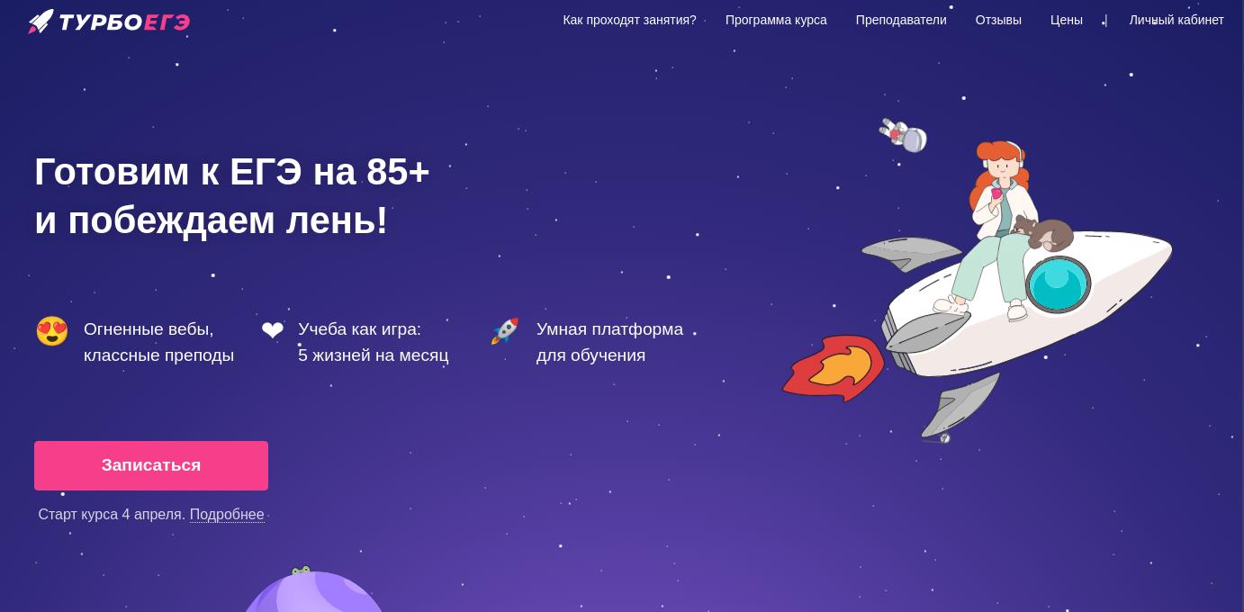 Благодаря сочетанию строгого контроля и дружеской атмосферы онлайн-школа Turbo Preparation помогает добиться наилучших результатов на экзамене. Опытные преподаватели готовят учащихся к сдаче школьных предметов: русский язык, математика, литература, физика в течение 1 учебного года. В месяц дается 12 уроков, после чего студентам даются практические задания для закрепления предмета.