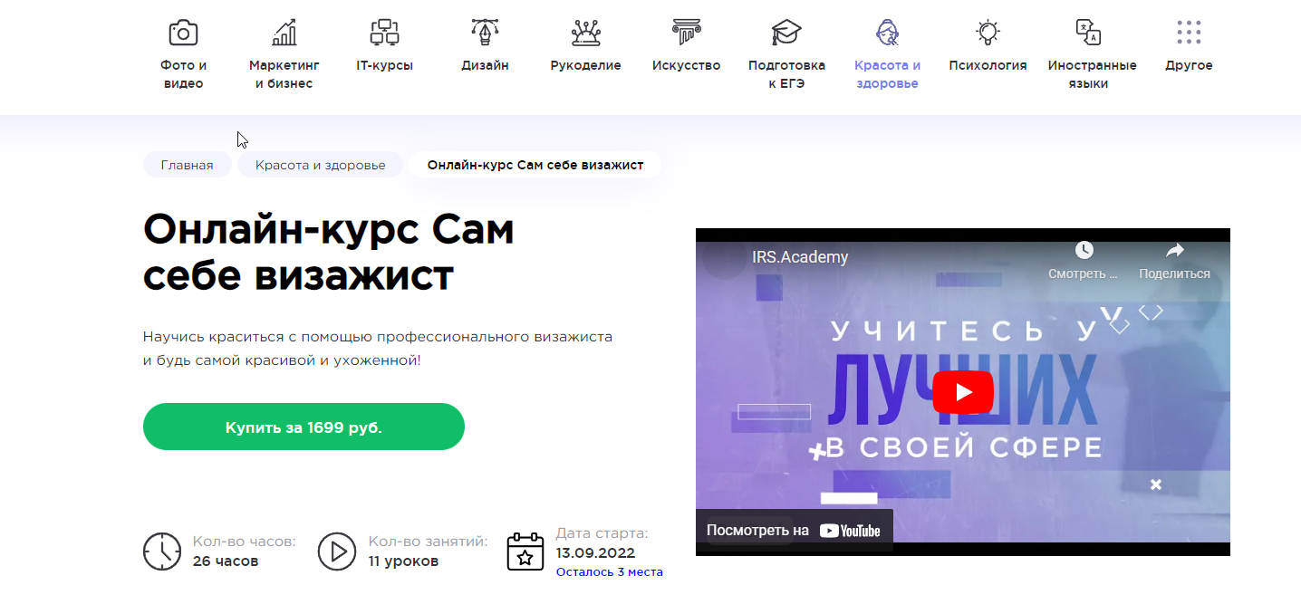 В русскоязычном сегменте по теме обзора представлен курс «PRO. Мастер-визажист»