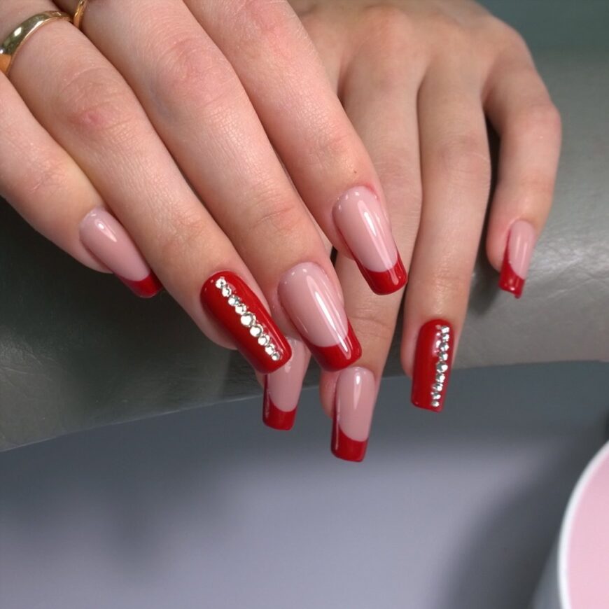 Оригинальный «яблочный» маникюр для квадратных ногтей