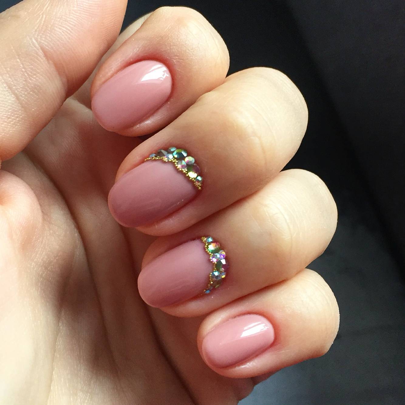 - Блестки и стразы. Наиболее подходящий вариант для торжества или свидания. Выглядит дорого и празднично.